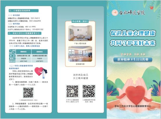 同时,心理健康教育中心编印了“精神卫生日”彩色宣传折页,发放给在校学生,并在“合师学工”“合师心理”公众号平台发布精神卫生科普文章,形成线上线下协调联动,在宣传精神卫生健康知识同时,提供了学院心理中心与权威精神卫生机构的心理服务热线,为同学们提供及时贴心的心理服务。