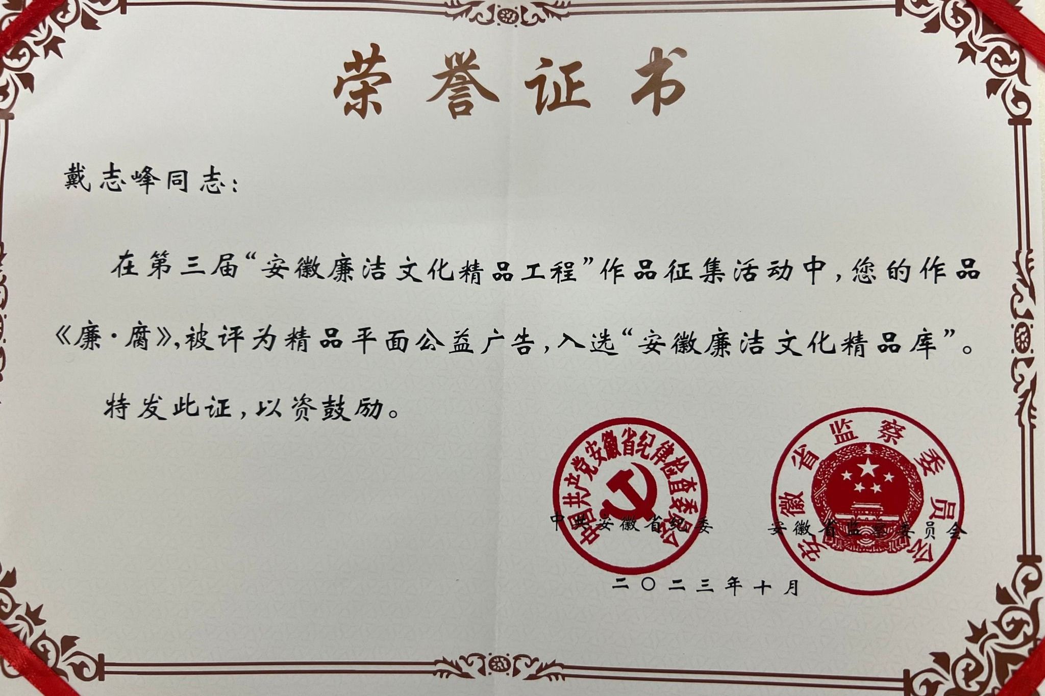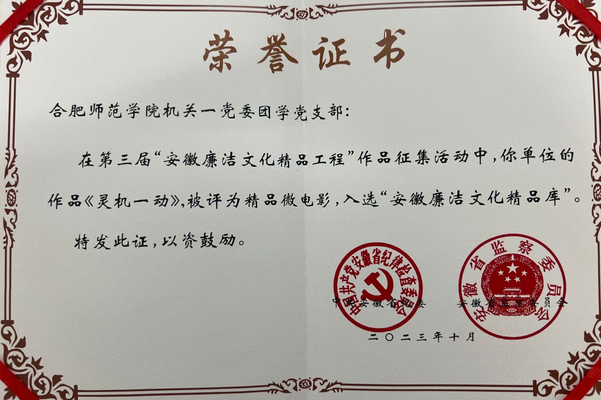 近日,省纪委监委公布第三届“安徽廉洁文化精品工程”作品征集展播活动评选结果,我院纪委选送微电影《灵机一动》、平面公益广告《廉·腐》被评为“安徽廉洁文化精品工程”作品,入选“安徽廉洁文化精品库”,院纪委荣获“优秀组织奖”。