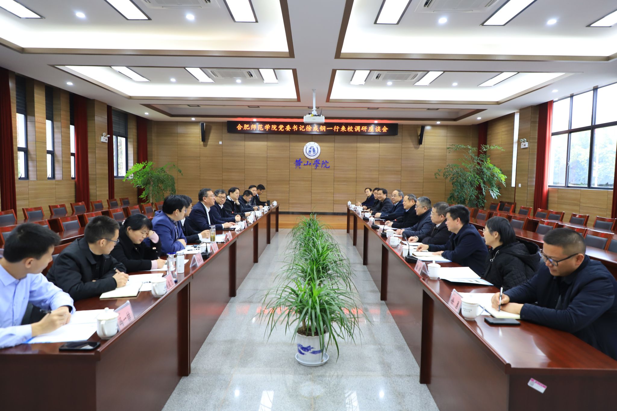 12月11日下午,院党委书记徐成钢带队赴黄山学院开展调研交流,党委委员、副院长华银峰,党委委员、组织部部长赵帮恚,党委委员、宣传部、统战部部长常树宝等参加调研交流。黄山学院党委书记李铁范,党委副书记、院长李庆宏,党委委员、副院长张小明等热情接待了徐成钢一行。座谈会由李铁范主持。
