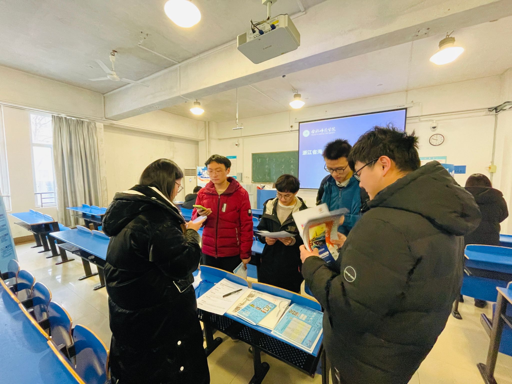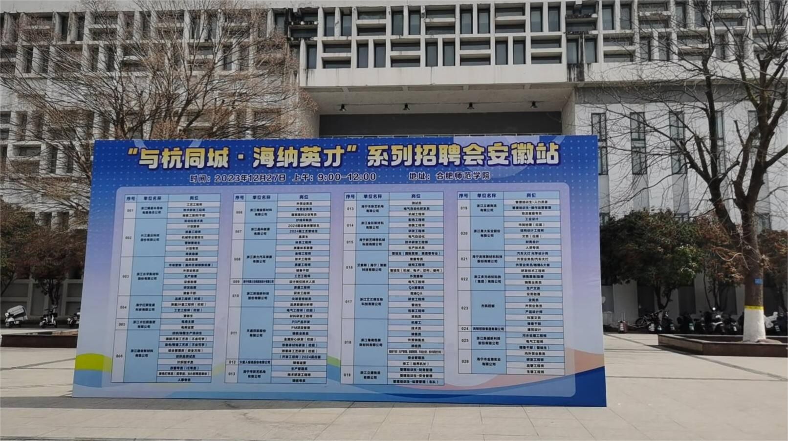 在交流会召开的同时,来自海宁市的浙江精瓷半导体有限责任公司、浙江晶科能源有限公司、兴三星云科技股份有限公司、天通控股股份有限公司、浙江艾兰得生物科技有限公司等24家企业在锦绣校区逸夫楼A107、A109教室开展招聘工作。