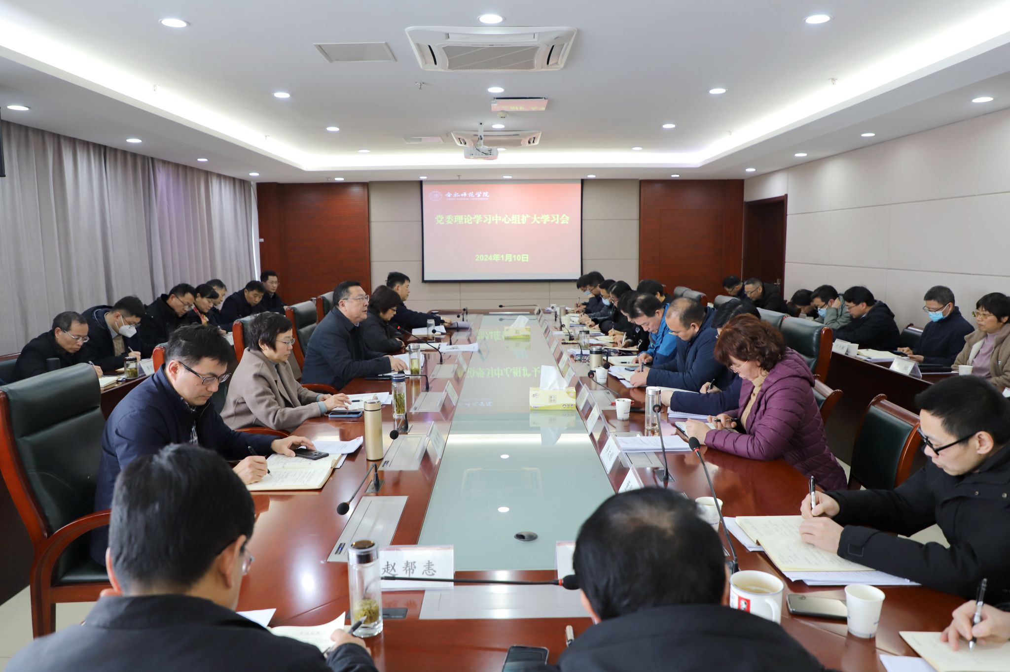 1月10日上午,学院在行知楼2008会议室举行党委理论学习中心组扩大学习会。党委书记徐成钢主持会议并讲话。党委理论学习中心组成员,各院系级党委(党总支、直属党支部)书记,各部门主要负责人参会。
