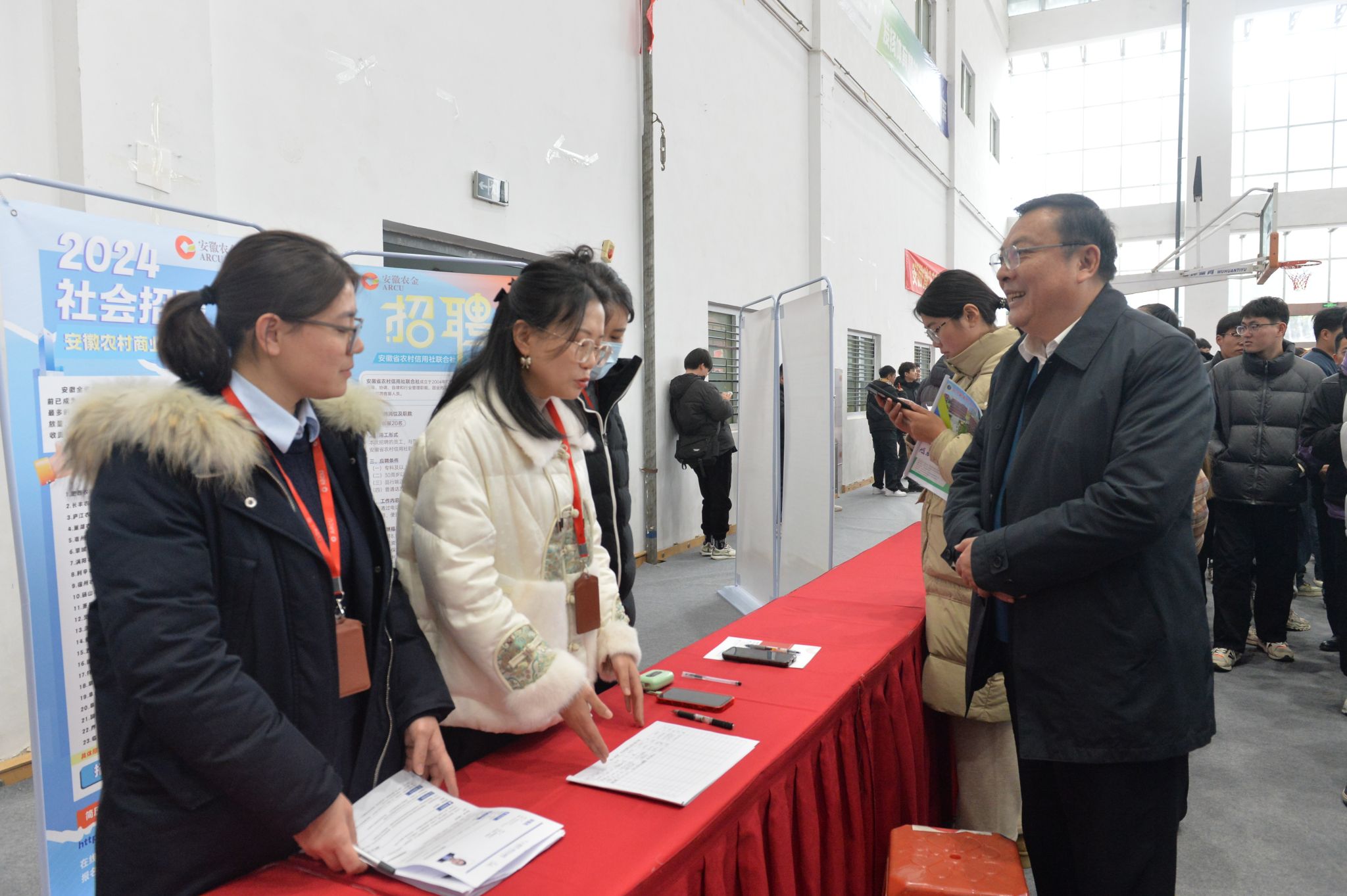 2月28日下午,由省教育厅联合省人力资源和社会保障厅、国家开发银行安徽省分行、省农村信用社联合社主办,我院承办的安徽省2024届高校毕业生“暖心帮扶”专场招聘会在锦绣校区体育馆举行。省委教育工委委员、省教育厅副厅长解平,省人力资源和社会保障厅副厅长程连政,国家开发银行安徽省分行党委委员、副行长龚春刚,省农村信用社联合社党委委员、副主任浦宏伟以及相关部门负责同志,我院党委书记徐成钢,党委委员、副院长周端明,部分市县人社部门、学校、用人单位、毕业生代表参加了本次启动仪式。