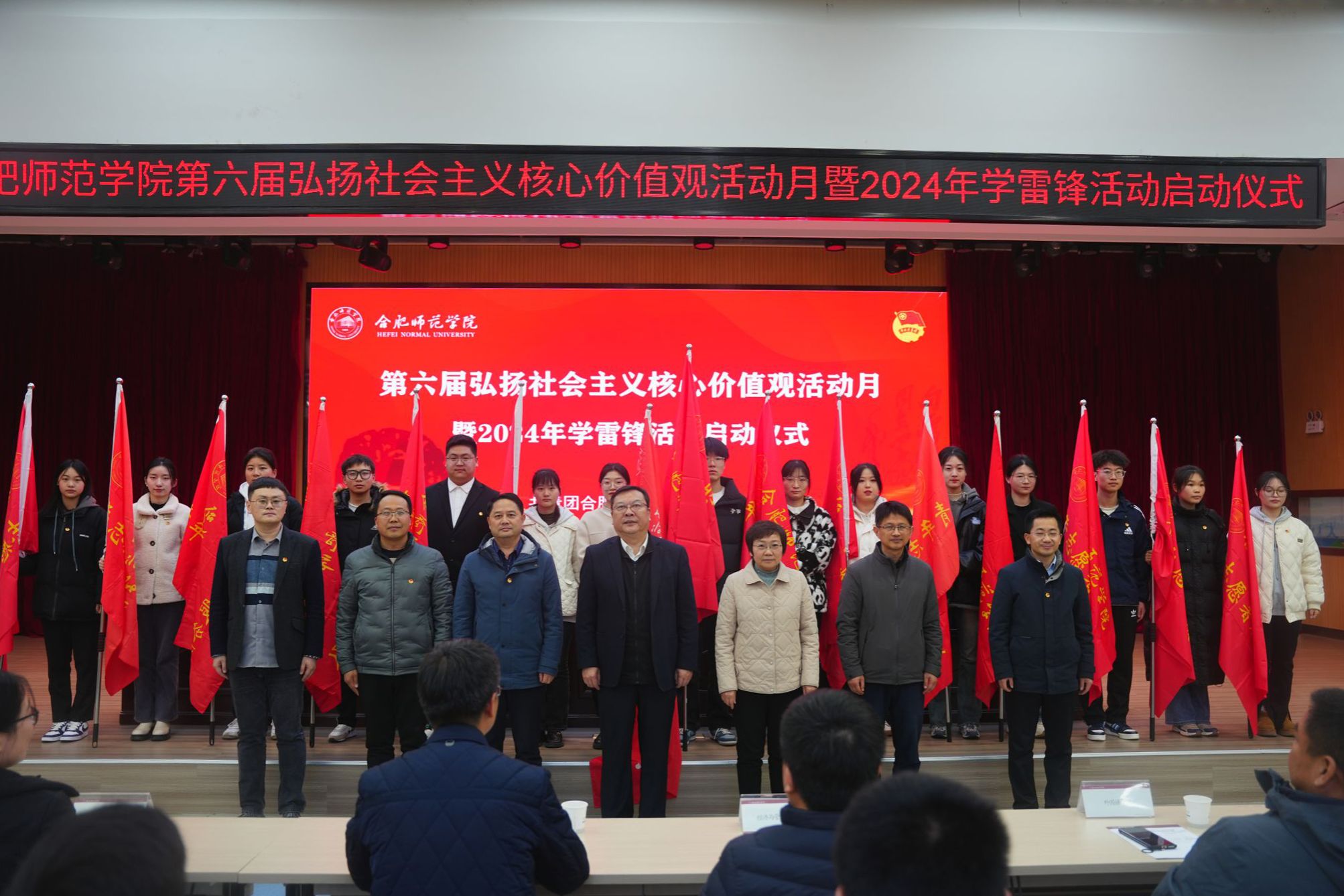 3月5日,学院第六届弘扬社会主义核心价值观活动月暨2024年学雷锋活动启动仪式在锦绣校区大学生活动中心举行。院党委书记徐成钢、党委副书记梁立昌,宣传部、党政办、就业创业工作处、后勤处、学生工作部、团委等单位负责人,各二级学院党团负责同志,青年志愿者代表近200人参加启动仪式。
