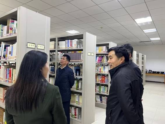 徐文林一行来到古籍室,听取了图书馆负责人关于古籍室建设情况汇报,充分肯定了古籍室的建设成效,指出古籍是学校的宝贵财富,古籍室是校园文化的一个亮点,要发挥我校古籍的比较优势,做好开发利用,充分发挥文化育人作用。同时要做好古籍保护,优化古籍库房管理,完善安全措施,确保古籍资源安全。