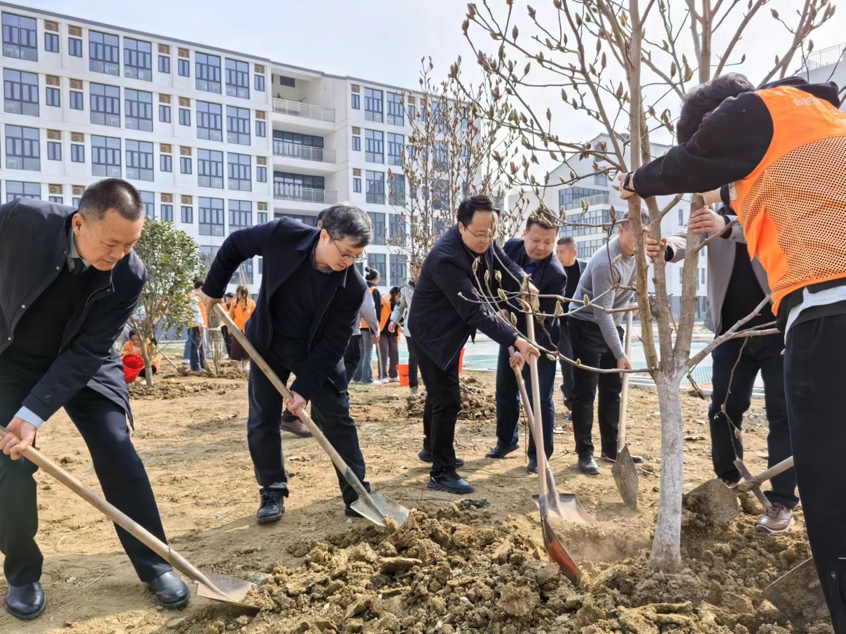 时值第45个植树节到来之际,后勤处(基建办)联合学校多部门分别在锦绣校区和滨湖校区开展植树节系列活动。安徽阡陌物业服务集团党支部书记、董事长田振雨,后勤处(基建办)、学生处(学生工作部)、团委、滨湖校区综合管理办公室等部门及绿化管理人员,参与了此次植树节劳动育人主题活动。(后勤处:吴晗、叶纯亮、陈锋)