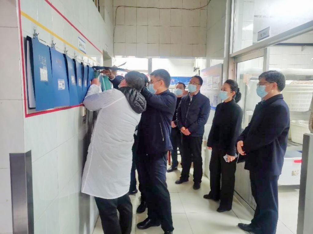 3月28日上午,合肥市委常委、副市长袁飞一行到我校锦绣校区督导检查食品安全工作,院党委委员、副院长华银峰陪同检查。合肥市市场监督管理局和合肥市经开区有关负责人、我院后勤处负责人及相关科室人员参加检查。