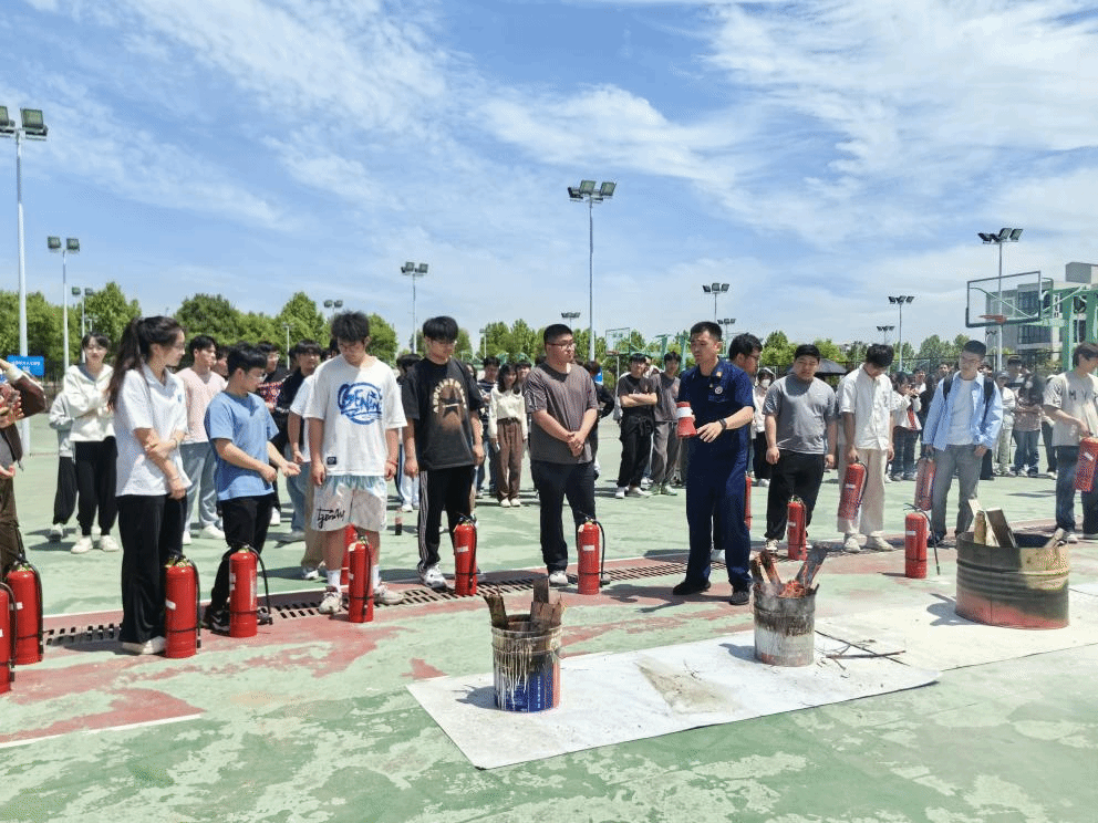 应急疏散演练结束后,巢湖市消防应急救援大队消防员现场进行消防安全培训,为师生们讲解了灭火器的使用原理、灭火相关注意事项、遇火险应急逃生的正确方法等消防安全常识,重点讲授了干粉灭火器、二氧化碳灭火器的使用方法和现场示范,内容丰富,深入浅出。师生观看完毕后,由学生代表出列分组进行灭火器材实操演练。通过 “灭真火”“速逃生”的真实体验,使每名师生都能成为“见火不慌、抬手就灭”的“准消防员”,进一步提升火灾应急处置能力。