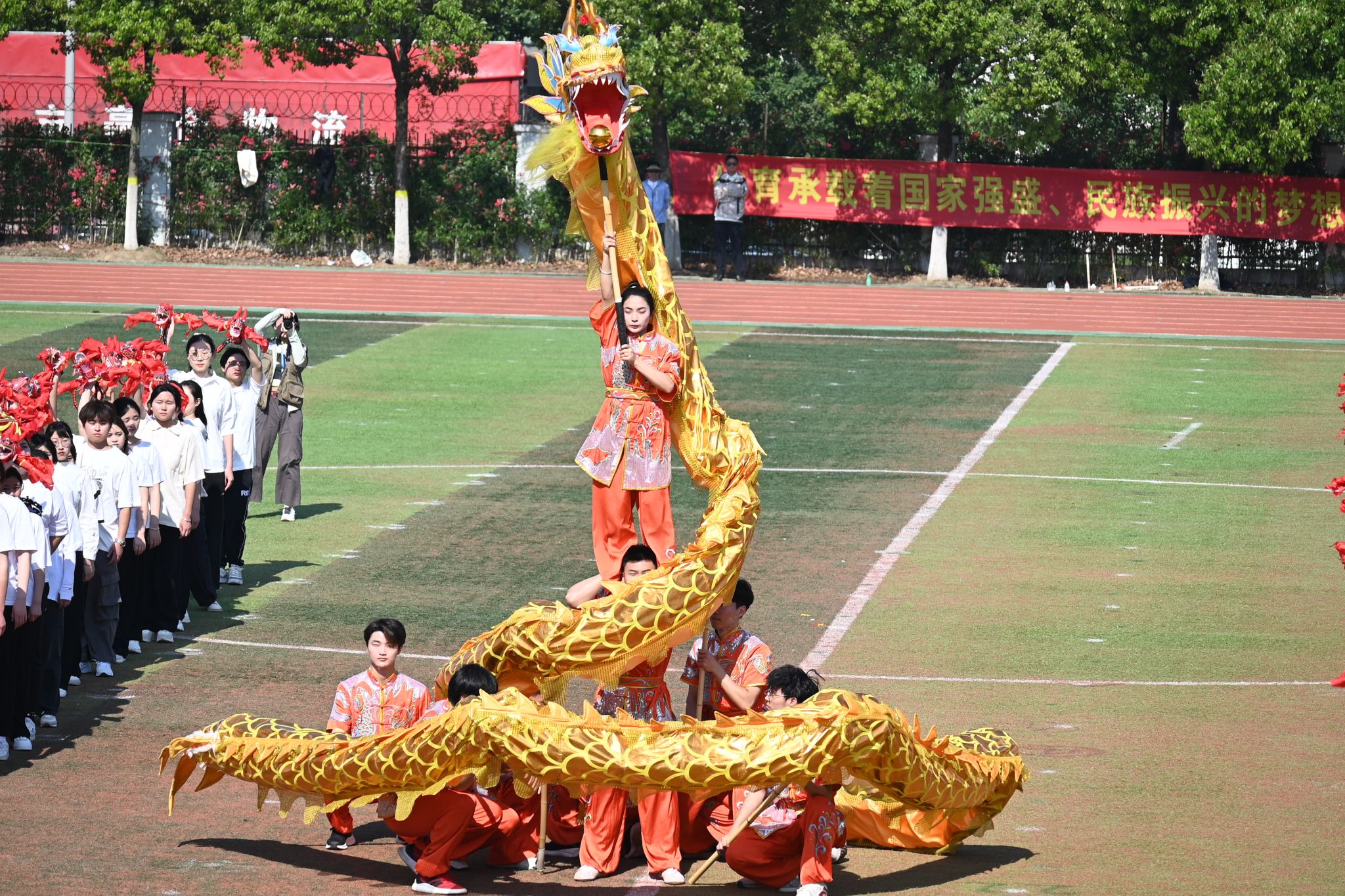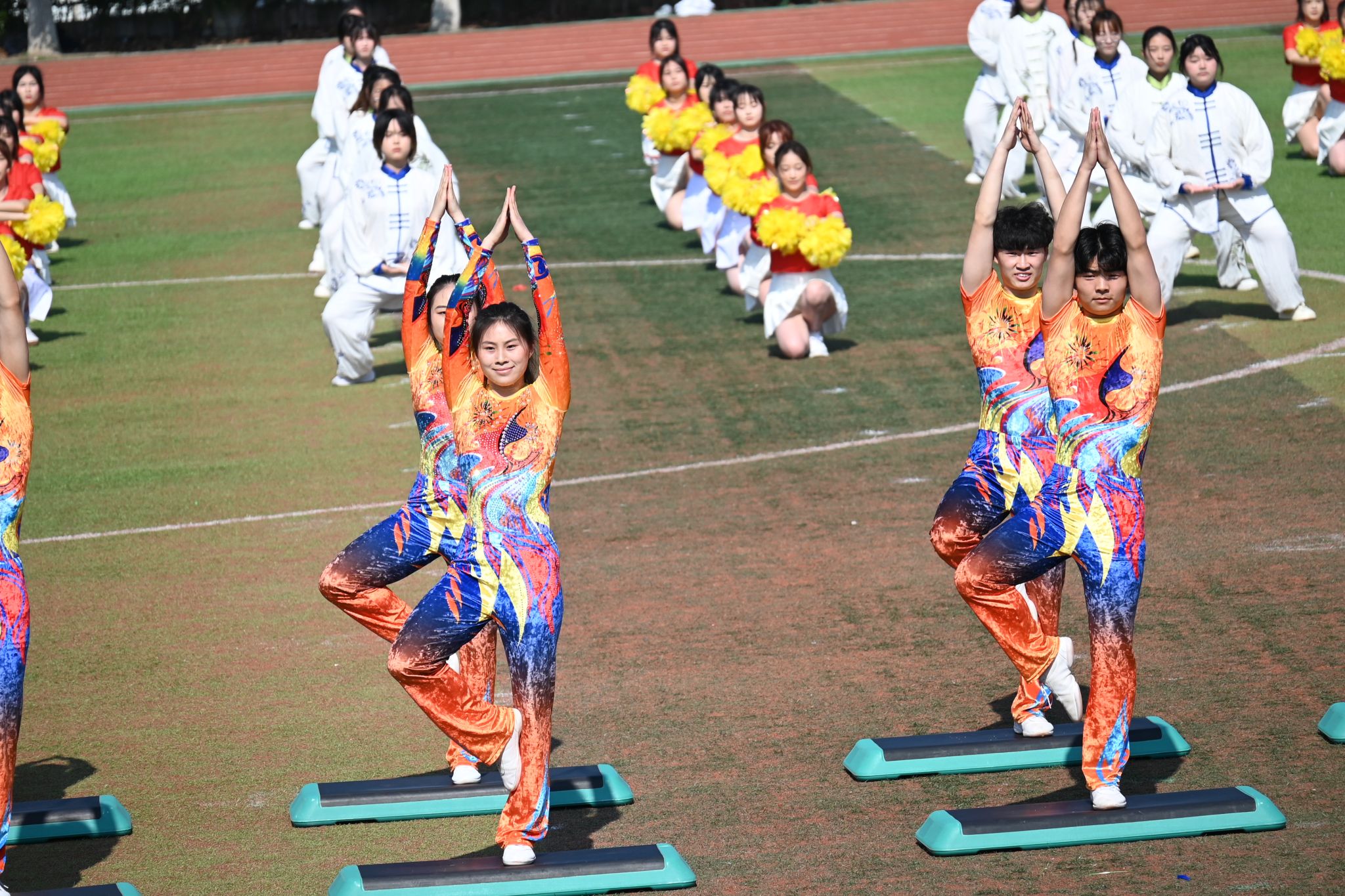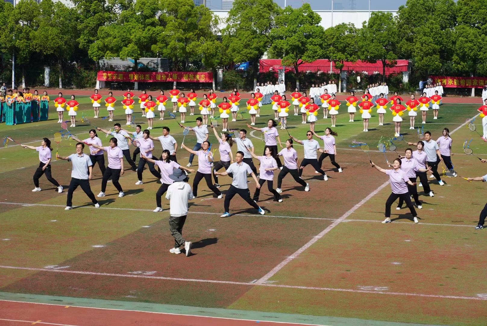 运动会正式比赛开始前,举行了教学汇报表演。《觉醒1919》 《再次出发》《未来我来》《师舞青春》《上春山—青春的光芒》等6个表演节目精彩纷呈,赢得现场师生的阵阵喝彩。
