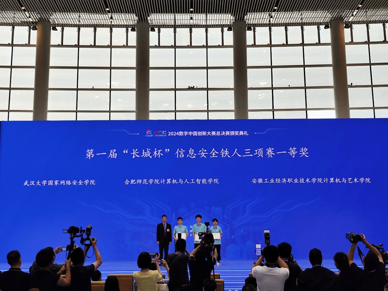 5月24日,第七届数字中国建设峰会在福州开幕,中共中央政治局常委、国务院副总理丁薛祥出席开幕式并发表主旨讲话。作为数字中国建设峰会的重要赛事,第一届“长城杯”信息安全铁人三项赛由国家网信办、教育部指导,中国信息安全测评中心主办,我校计算机与人工智能学院代表队从88支决赛队伍中脱颖而出,荣获全国总决赛一等奖。