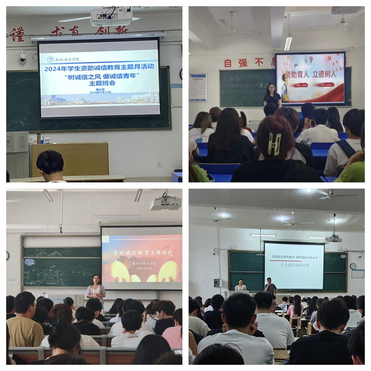 学院大力开展政策宣讲和诚信教育,推进诚信意识深入人心。学生工作处举办了线上征信金融知识竞赛,共有1022名同学参与竞赛。通过“以赛促学、以赛促行”的方式对广大学生进行国家助学贷款等资助政策、征信金融知识的普及宣传,帮助学生提高征信意识、金融风险防范意识。各二级学院均面向全体学生开展了资助诚信主题班会,各班级结合文件精神、鲜活案例讲授诚信美德的有关知识,倡导青年学生增强诚信意识,传播诚信文化,引导合师学子争做新时代诚信青年。各二级学院还结合《人行个人征信知识介绍》等宣讲材料,开展诚信征信知识讲座,对广大学生进行诚信及金融知识普及宣传教育,进一步增强学生诚信意识,引导毕业生在就业过程中主动就业、诚信守约,并提醒办理国家助学贷款的毕业生按合同履约,同时将诚信教育、预防诈骗教育、远离不良贷、套路贷警示教育等融入学生日常管理,做到早防范、早教育、早发现、早处置。