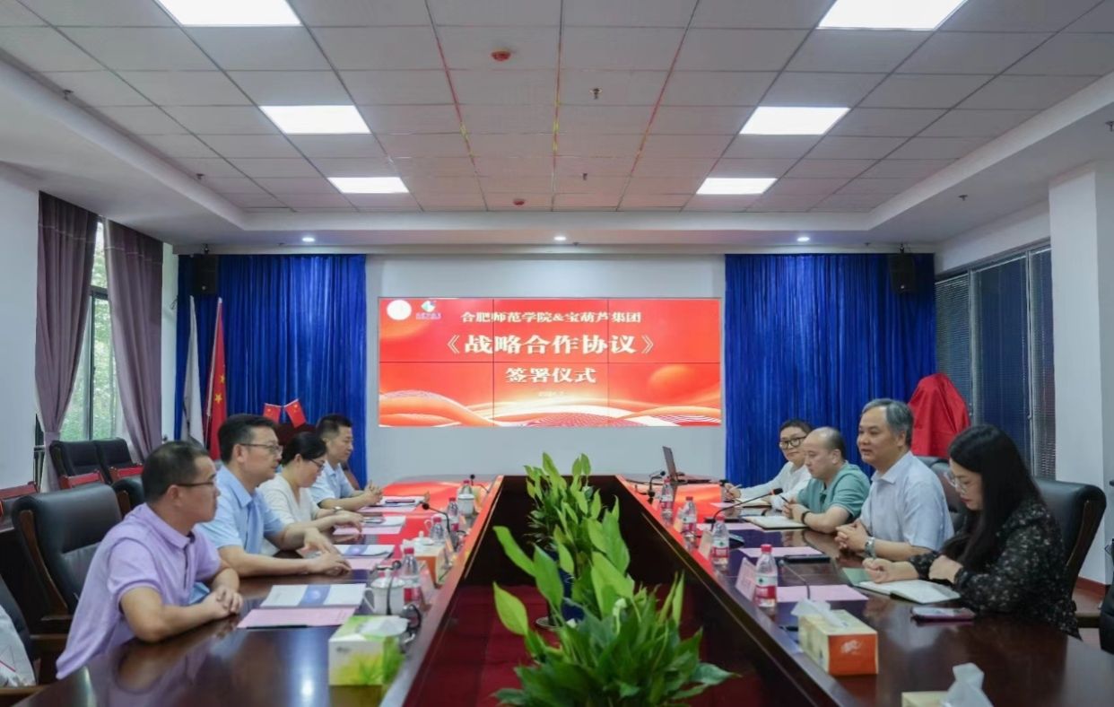7月4日下午,学院与安徽宝葫芦信息科技集团股份有限公司(宝葫芦集团)举行战略合作签约和大学生教育实践基地揭牌仪式。宝葫芦集团董事长、总裁孙连峰,党支部书记、副总裁程庆乐,技术副总裁吕玉娟,心理学工程师朱智豪,beat365唯一官方网站学术副院长郝宁,教育与心理科学学院党委书记董萍、副院长胡哲,科研处刘健教授等参加了签约仪式。孙连峰主持仪式。