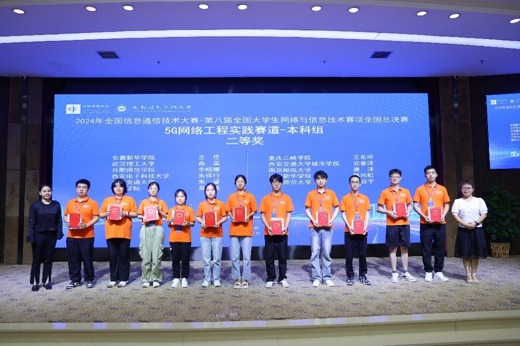 在教务处支持下,电子信息与集成电路学院安排竞赛指导教师,对参赛队伍进行赛事全过程培训指导。最终,由赵晓虎老师指导的2023级通信工程2班李晓娜同学在以安徽、江苏、浙江、上海等7个省、直辖市的100余所高校组成的区域赛中荣获5G网络工程实践赛道(本科组)一等奖晋级全国总决赛,并在全国总决赛中经过激烈角逐和严格评审,荣获全国总决赛二等奖。