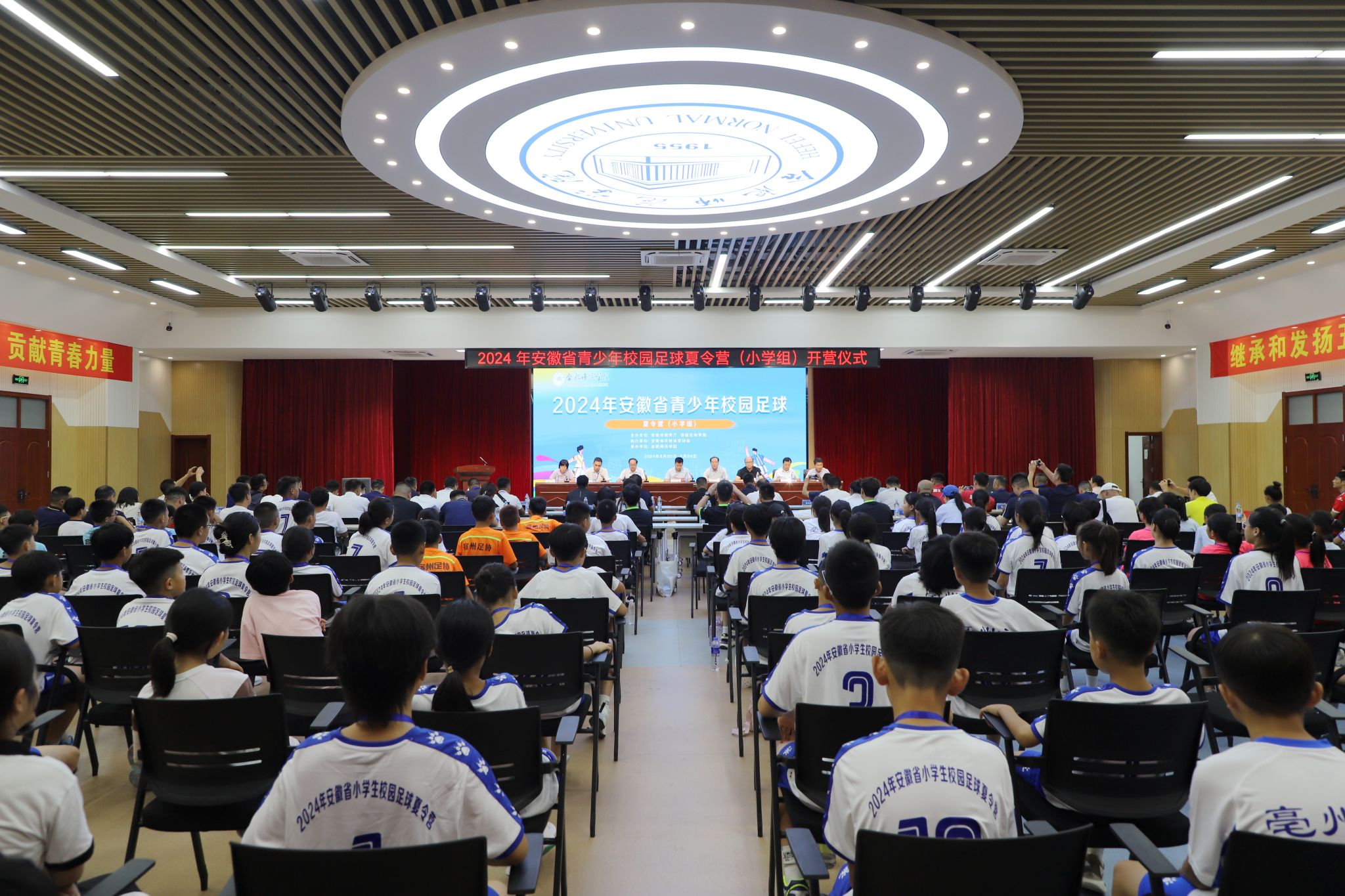 8月20日-8月24日,由安徽省教育厅、安徽省体育局主办,安徽省学校体育协会执行,beat365唯一官方网站承办的2024年安徽省青少年校园足球夏令营(小学组)活动在我院圆满落幕。来自安徽省16个地市共31支队伍,155名同学、31名教练员、16名领队齐聚一堂,共同开启一场足球盛宴、青春盛会。