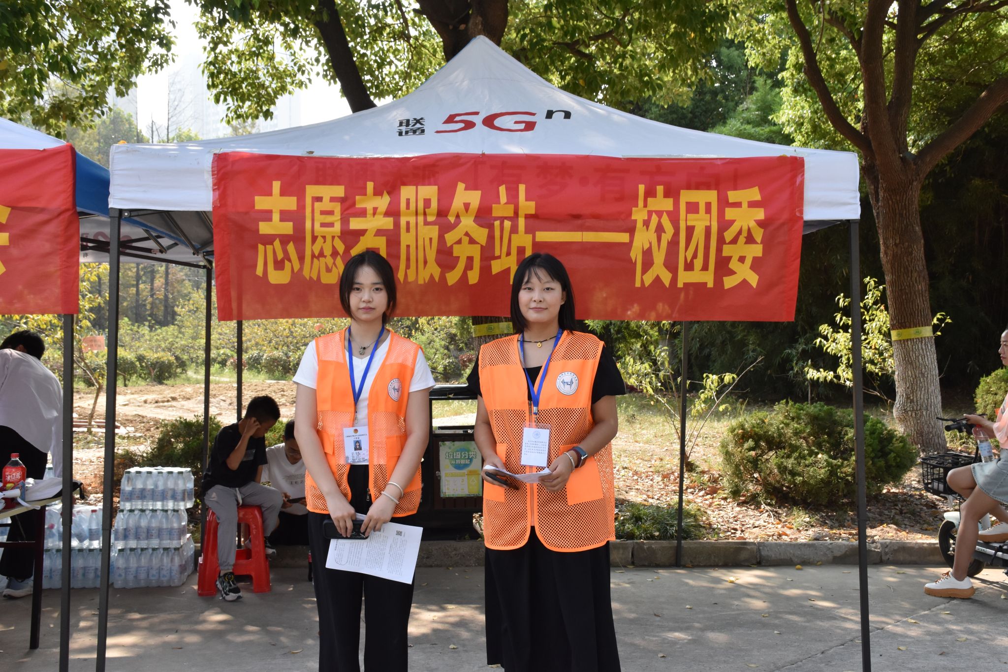 “同学您好,合师欢迎您!”“阿姨,行李给我吧”“奶奶,天热,您坐这喝点水,休息会”“这是我们学校的图书馆,那里是大学生活动中心”。