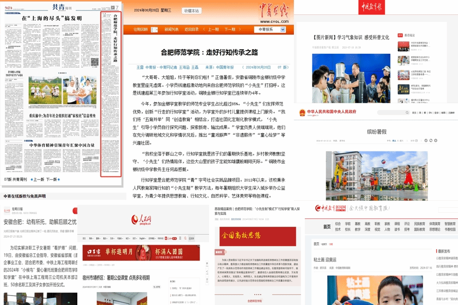 《中国青年报》连续第六年进行专题报道,《中国教育报》《光明日报》客户端、《新华社》客户端、人民网、中国教育新闻网、学习强国、高校思政网等多家国家级主流媒体,安徽新闻联播、《安徽日报》《安徽青年报》《安徽科技报》等省级主流媒体累计报道1100余次。