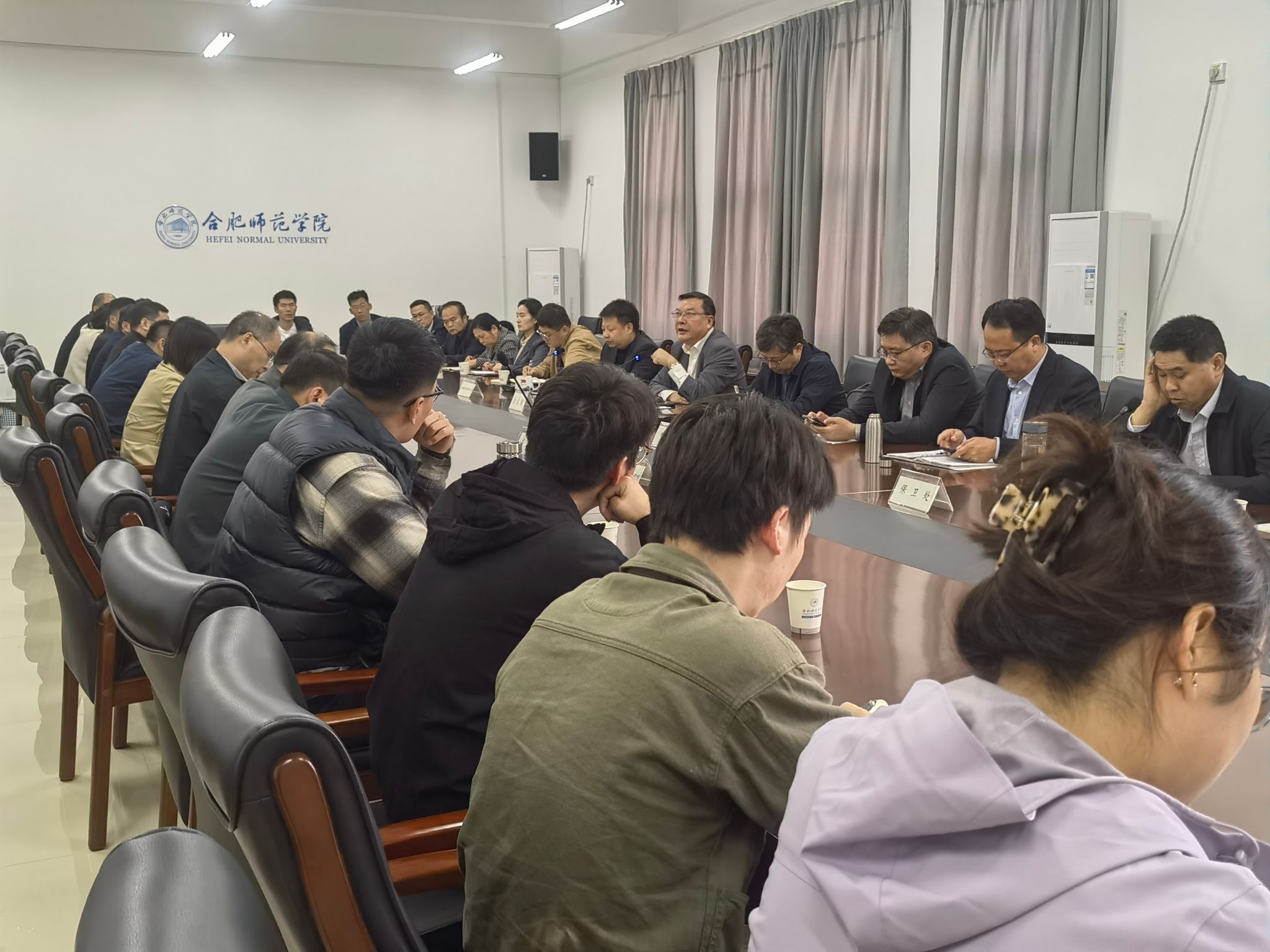 10月31日,学院在滨湖校区第二会议室召开本学期滨湖校区第二次工作例会。院党委书记徐成钢,党委委员、副院长、滨湖校区管理委员会主任华银峰出席会议。教务处、学生工作处、团委、后勤处(基建办)、保卫处、资产管理处、图书馆、实验室建设与管理中心、信息化管理处、滨湖办等部门负责人、各入驻滨湖校区二级学院带班领导、辅导员老师参加会议。会议由滨湖校区管理委员会办公室主任、滨湖办负责人主持。