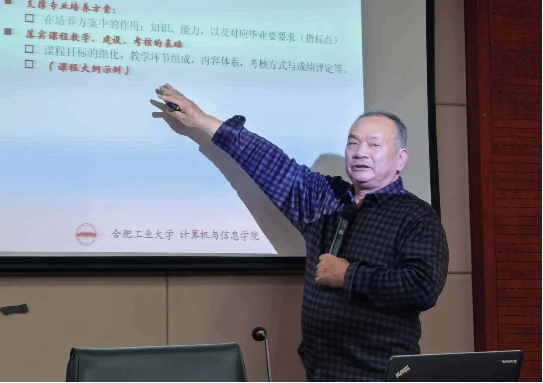 胡学钢以《推进专业认证的教学体系建设》为题,详细介绍了近年来安徽省专业工程教育认证工作的开展情况及2024版工程教育认证标准的变化。他围绕培养方案体系设计、毕业要求及其指标点分解、基于目标导向的持续改进机制建设与应用、课程建设与教学实施的基本要求等方面对工程教育认证工作进行了详细解读。本次培训,既有标准解读,又有案例分析;既提出常见问题,又给出解决建议。讲座内容风趣生动,受到参会教师一致好评。