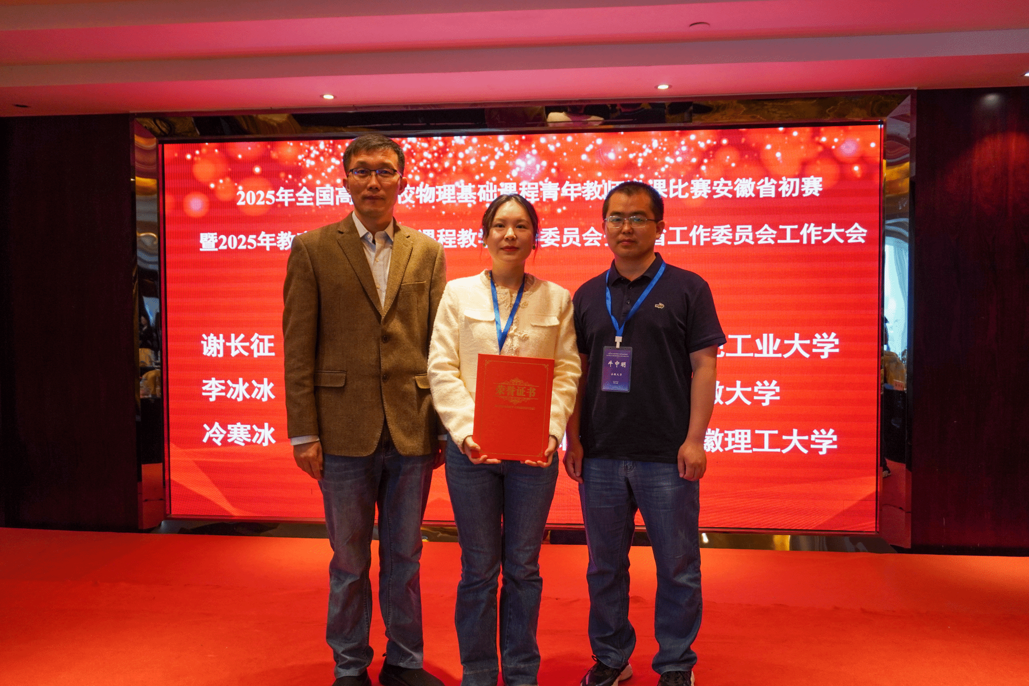 5月8日至10日,2025年全国高等学校物理基础课程青年教师讲课安徽省赛在安徽大学举办,物理与材料工程学院谢长征老师代表学校参赛,他以精湛的教学技艺和创新的教学设计,从来自中国科学技术大学、合肥工业大学等省内20所高校的参赛教师中脱颖而出,斩获一等奖第一名。