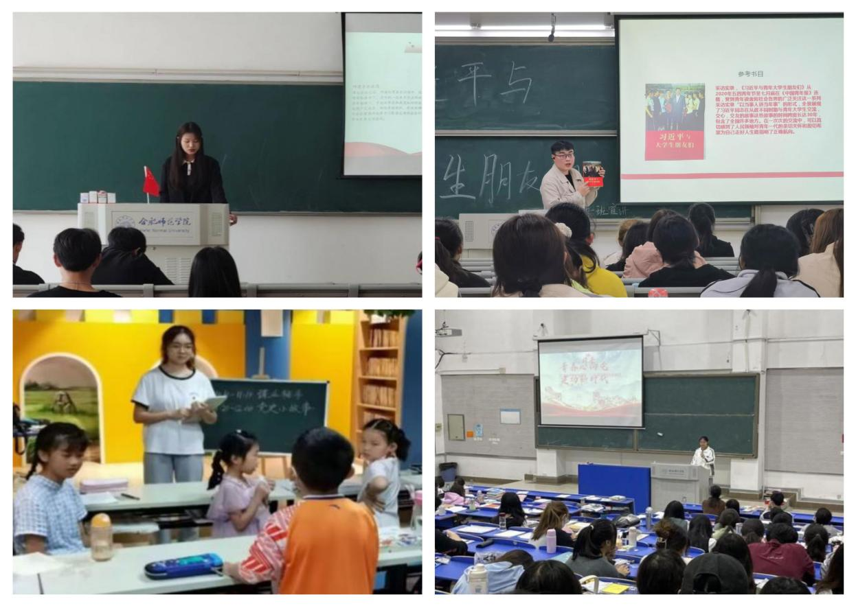 一是理论宣讲出实效。开展“永远跟党走 奋进新征程”五四青年节系列活动,组织线下宣讲学习,以《新时代的中国青年》白皮书为理论基础并结合自身学习体会,为入党积极分子讲述“五四”历史,弘扬“五四”精神,描绘出一幅新时代中国青年生逢盛世、共享机遇的美好画卷。开展“青春心向党,党史我来讲”主题宣讲活动,带领师生重温党史、传诵红色故事、传承红色精神。