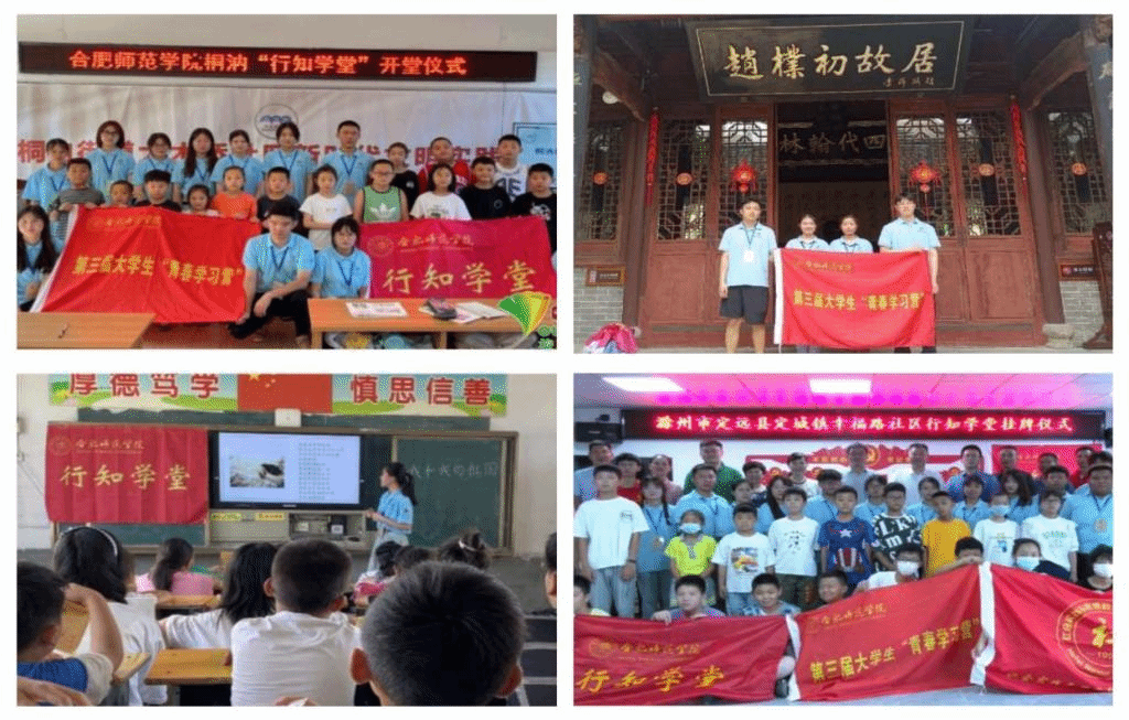 三是行知学堂办实事。第三届青春学习营的50余名学员利用暑假,积极投身暑期社会实践,奔赴滁州市定远县、宣城市广德市、芜湖市湾沚区、马鞍山市花山区、合肥市肥西县、安庆市迎江区、蚌埠市怀远县等地,走进社区、深入村庄,开展了为期半个月的“行知学堂”暑期社会实践和志愿服务活动,服务留守儿童200余人。(学生工作部:葛畅)