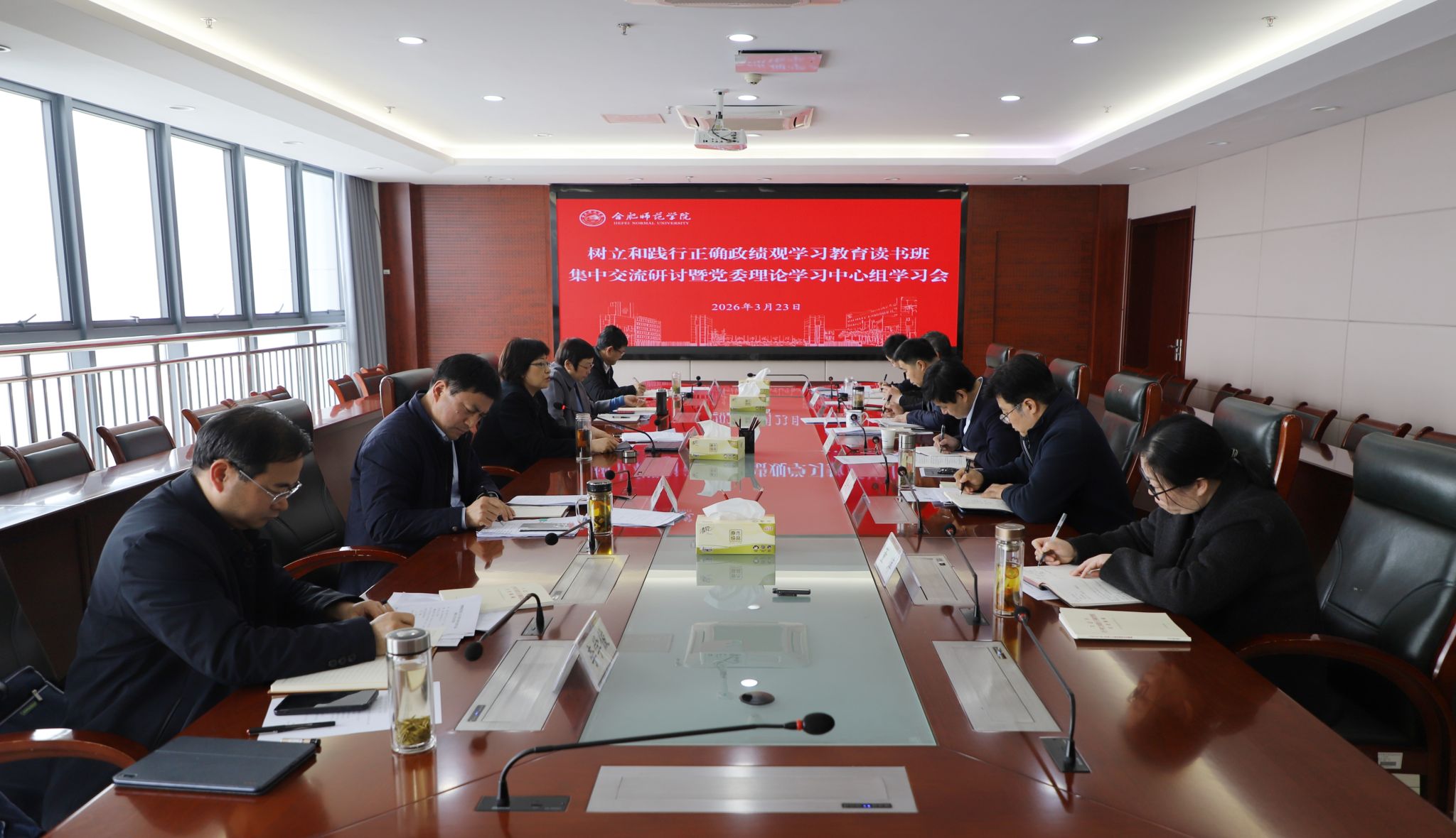 3月23日上午,学校在行知楼2008会议室举行树立和践行正确政绩观学习教育读书班集中交流研讨暨党委理论学习中心组学习会议,党委书记、校长方东玲主持会议并讲话。党委理论学习中心组成员参加会议,教务处、发展规划处、教育与心理科学学院主要负责人列席会议。