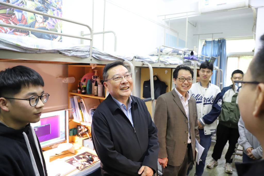 徐成钢先后来到思政课现场、实验室、大学生活动中心、食堂、宿舍和学生党支部理论学习会现场等,每到一处他都与师生亲切交流,重点询问了教师教育教学、学生学习生活保障、实验室条件、一站式学生社区和大学生活动中心建设等情况,认真听取师生的意见建议,向学生送去学业进步、快乐成长的美好祝愿,向奋战在育人一线的管理服务人员表示亲切问候。