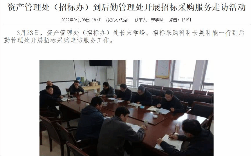 扎实调研,跟进服务。资产管理处(招标办)深入开展学院、二级单位采购业务专题调研,坚持问题导向,把调研的重心放在采购预算、影响政府采购执行效率、制约政府采购实施质量等问题上。