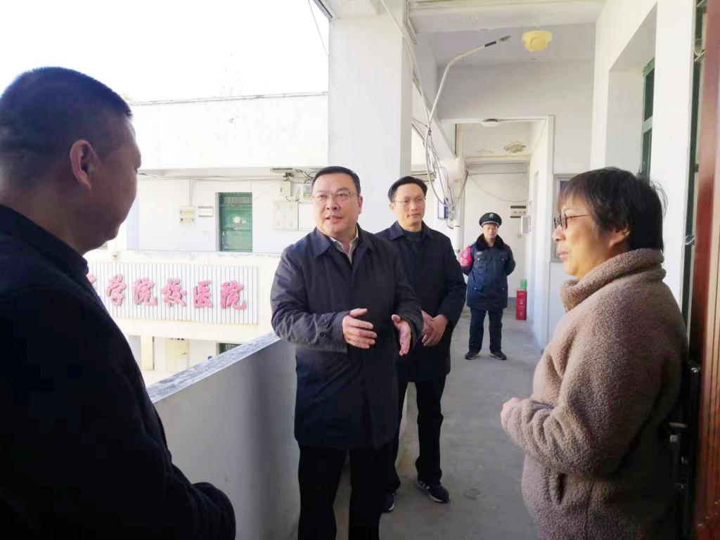 上午9时许,徐成钢以“四不两直”方式,详细检查了总值班室、行知楼等值班值守和校园安保情况,并就有关工作提出针对性的指导意见。在总值班室、安保值班室等,徐成钢关切询问值班人员生活和工作情况,仔细查看寒假期间值班表、工作日志等资料台账,详细了解值班值守工作生活保障情况,向值班值守人员坚守岗位、忠诚履职表示肯定,并向大家致以新春的问候和美好的祝福。