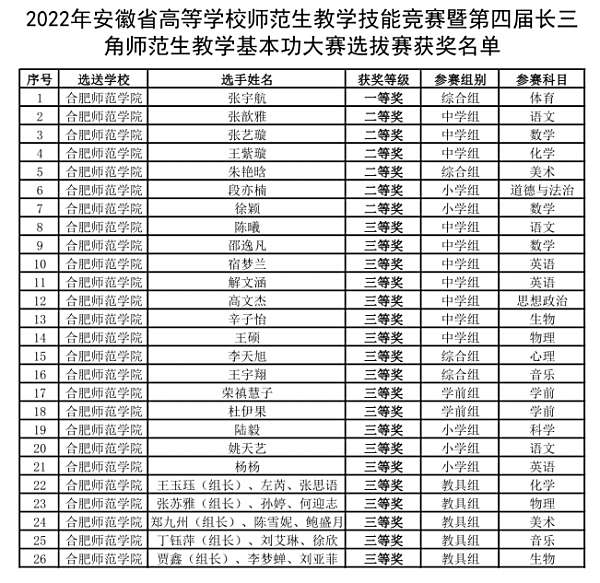 安徽省高等学校师范生教学技能竞赛是全省高校师范生教学技能的“大练兵”,也是师范专业学生展示个人风采和教学技能的“大舞台”,更是对师范生人才培养质量的“大检阅”。我院选手在赛场上锐意进取,沉着应战,赛出了水平和风格,充分展现了我院师范生扎实的专业知识、较强的教学技能和较高的综合素质。