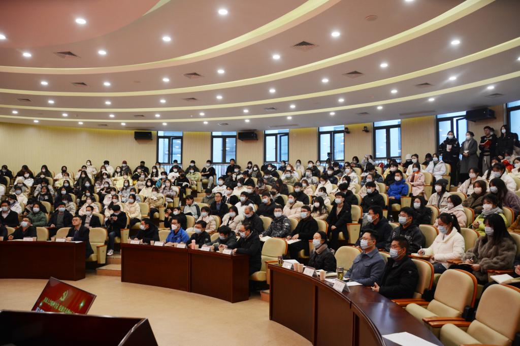 本网讯 为进一步深入学习宣传贯彻党的二十大精神,切实引导全校干部师生把思想、认识和行动统一到党的二十大精神上来,11月30日下午,在滨湖校区学术报告厅,院党委书记徐成钢带头深入师生作党的二十大精神宣讲。滨湖办、学工部、宣传部、保卫处、团委等单位负责人,各二级学院党委负责人、辅导员代表,“青马工程班”学员、“青春学习营”学员、班级思政委员和2021级本科生代表等参加宣讲报告。