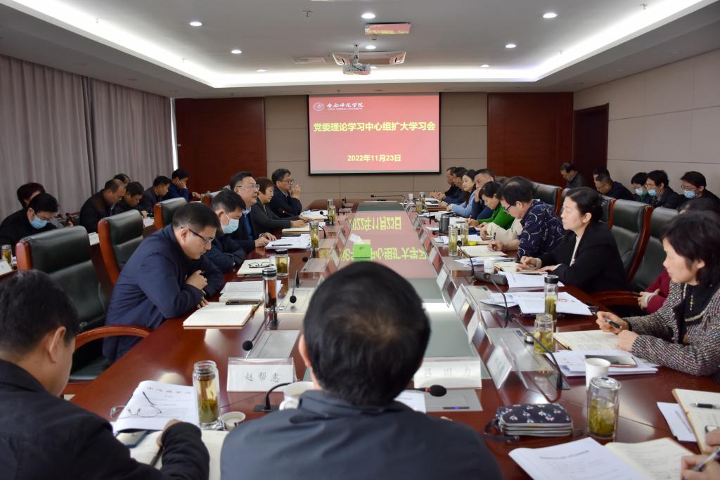 本网讯 11月23日上午,学院举行党委理论学习中心组扩大学习会。党委书记徐成钢主持会议并讲话。党委理论学习中心组成员,各院系级党委(党总支、直属党支部)书记,各学院院长,各部门主要负责人参会。