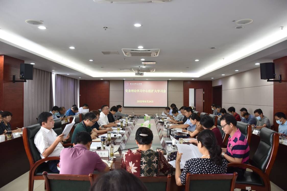 本网讯 8月24日上午,学院举行党委理论学习中心组扩大学习会。院党委书记徐成钢主持会议并讲话。党委理论学习中心组成员,各院系级党委(党总支、直属党支部)书记,各学院院长,各部门主要负责人参加会议。