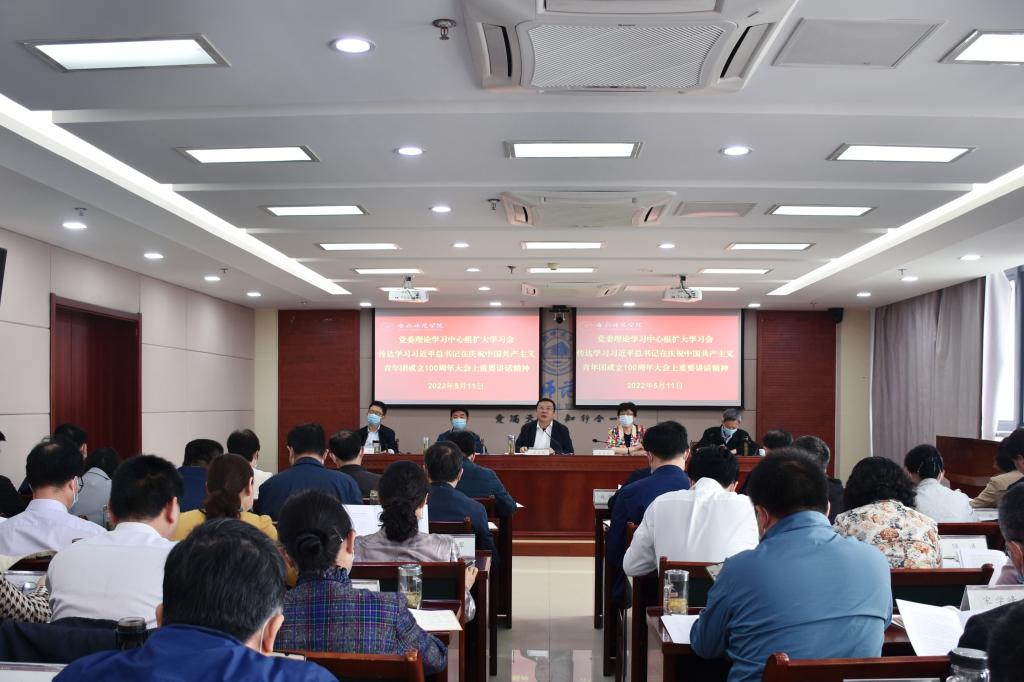 本网讯 5月11日上午,学院举行党委理论学习中心组扩大会议,传达学习习近平总书记在庆祝中国共产主义青年团成立100周年大会上的重要讲话精神,部署贯彻落实工作。党委书记徐成钢主持会议并讲话。党委理论学习中心组成员出席会议,各院系级党委(党总支、直属党支部)书记,各学院院长、各部门主要负责人参加会议。