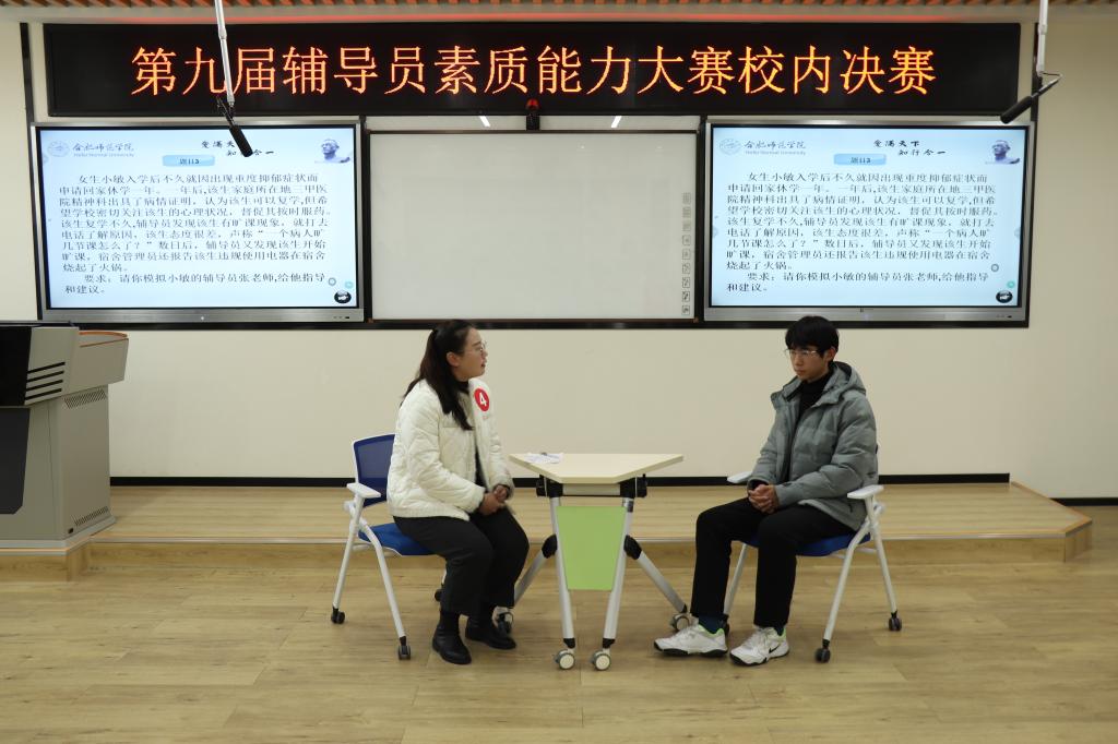 本次比赛分为案例研讨和谈心谈话两个环节,旨在考察辅导员考察辅导员对学生特征、学生成长成才规律的了解把握程度,综合运用理论分析问题、研判问题、解决问题的能力,以及对学生的教育引导能力、解决理论困惑和实际问题的能力等。