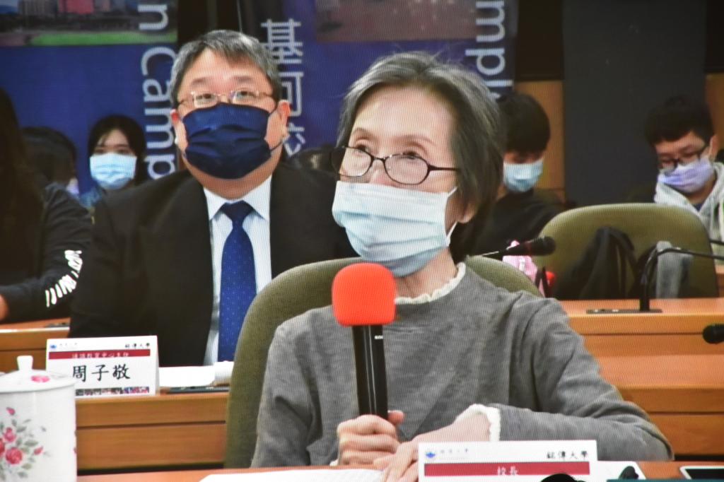 随后,铭传大学的师生代表分别发言。铭传大学周子敬老师曾来访我院,我院师生的热情给他留下了深刻的印象。黄山变幻万千的景象、合肥城市建设的繁荣和生活的便利都让他赞叹不已。铭传大学罗晓彤同学表示,虽然疫情让两校师生不能实地相见,但她相信,我们的情谊和合作都不会打折。