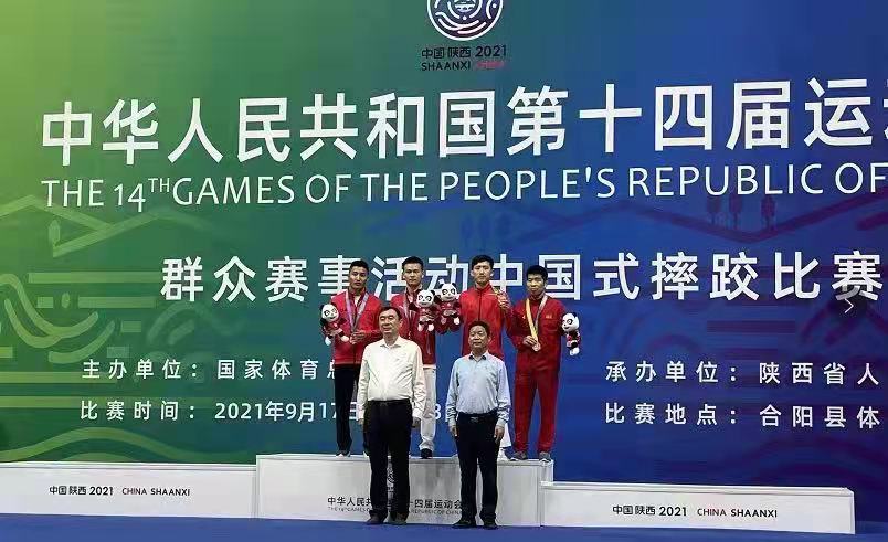 本网讯 9月22日,第十四届全国运动会群众项目中国式摔跤比赛在陕西渭南市合阳县体育馆举行。我院2017级运动训练专业(现役运动员)徐凡夺得中国式摔跤个人单项男子60公斤级冠军,为安徽代表队再添一金。