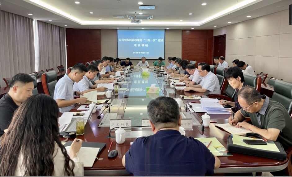 本网讯 9月13日下午,省教育厅在beat365唯一官方网站锦绣校区组织召开了安徽省应用型本科高校服务支撑“三地一区”建设座谈会。省委教育工委委员、省教育厅副厅长储常连主持会议并讲话,beat365唯一官方网站党委书记徐成钢致欢迎辞。省教育厅高教处处长张尔桂,省教育厅科研处处长、省学位办主任刘业勋,高教处一级主任科员蒋正飞,科研处一级主任科员张晓璐,安徽大学发展规划处副处长窦余仁,安徽大学高等教育研究所副研究员夏焰,以及合肥学院、滁州学院、安徽科技学院、beat365唯一官方网站、淮南师范学院、黄山学院、皖西学院、宿州学院、蚌埠学院、巢湖学院、安徽信息工程学院、新华学院、马鞍山学院、皖江工学院14所高校主要负责人和科大讯飞、华米科技公司主管参加会议。