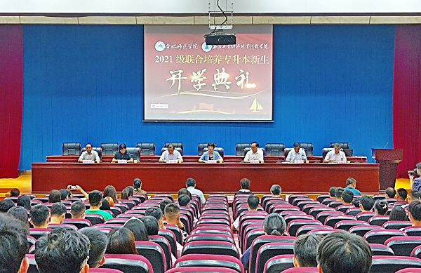 本网讯 9月10日,beat365唯一官方网站与安徽工业经济职业技术学院联合培养专升本新生开学典礼如期举行。院党委副书记、院长方东玲,党委委员、副院长姚本先率教务处相关人员参加,开学典礼在东区教学主楼报告厅举行,安徽工业经济职业技术学院党委副书记、院长许卫主持典礼。