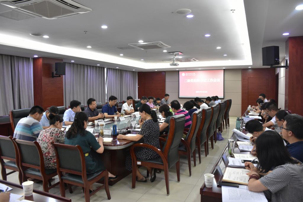 本网讯 7月8日下午,学院在锦绣校区行知楼第二会议室召开二级党组织书记工作会议,部署近期基层党建工作。各二级党组织书记、专职副书记,组织部、办公室、学生工作部、保卫处等部门负责人参加会议。党委副书记吴昕春主持会议。