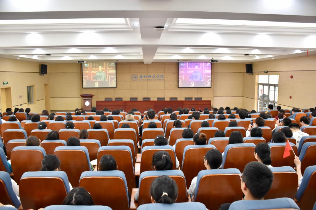 各二级学院分团委书记、辅导员代表和团员青年学生代表在学术报告厅集体收看大会盛况。各单位部门组织师生在各自会议室集体收看大会盛况。后勤处组织在滨湖校区桂园餐厅一楼、锦绣校区竹园餐厅一楼集体收看大会盛况。