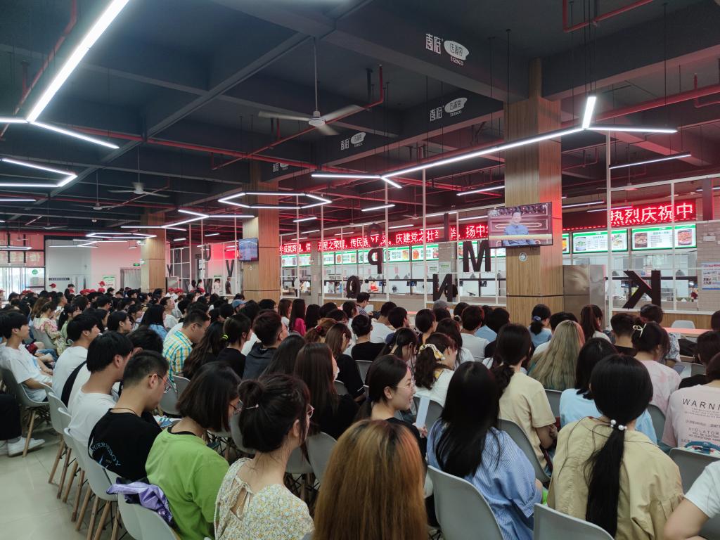 滨湖校区师生在食堂集中观看大会