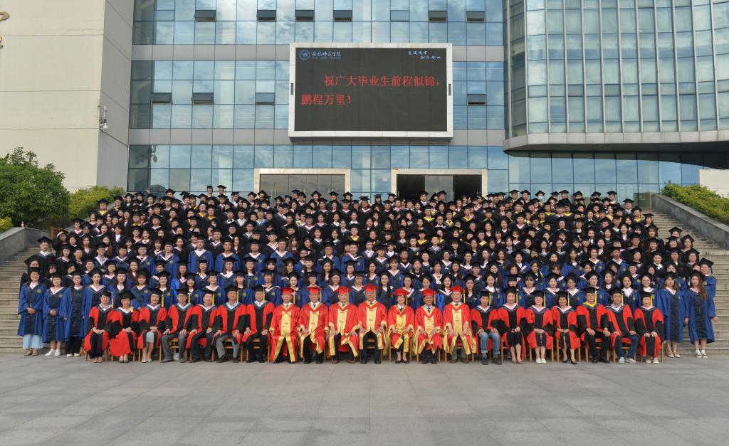 典礼结束后,院领导和全体学位评定委员会委员同毕业生代表在图书馆西门行知广场合影留念。