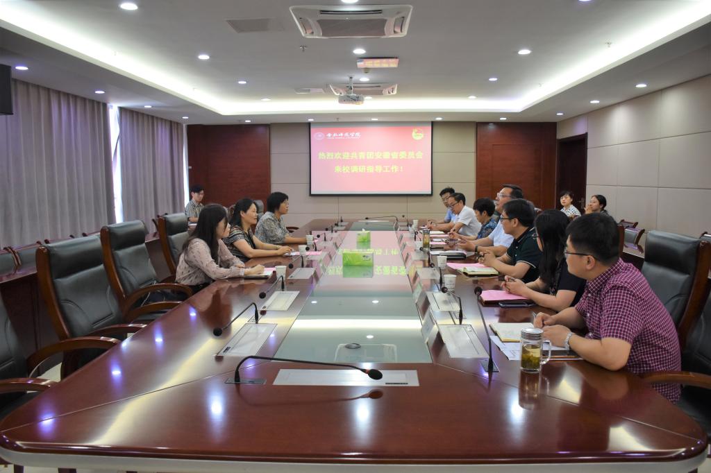 本网讯 6月23日下午,团省委副书记郑兰荣、团省委二级巡视员李丹云、团省委宣传部部长方芳一行来我院调研指导工作。党委书记徐成钢,党委副书记、院长方东玲热情接待了团省委一行。