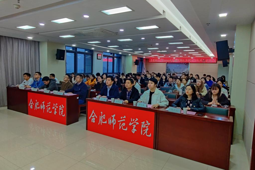 本网讯 4月14日,学校在锦绣校区行知楼举行2020年度“五四红旗团支部标兵”评审会。共青团安徽省委组织部副部长王磊、合肥工业大学团委书记武国剑、安徽大学团委书记高贵和、安徽医科大学团委书记张蔚、安徽建筑大学团委书记唐志敏、安徽中医药大学团委副书记叶兰兰、中国青年报安徽记者站记者王海涵出席会议并担任评委,来自各二级学院的学生代表100余人参加会议。