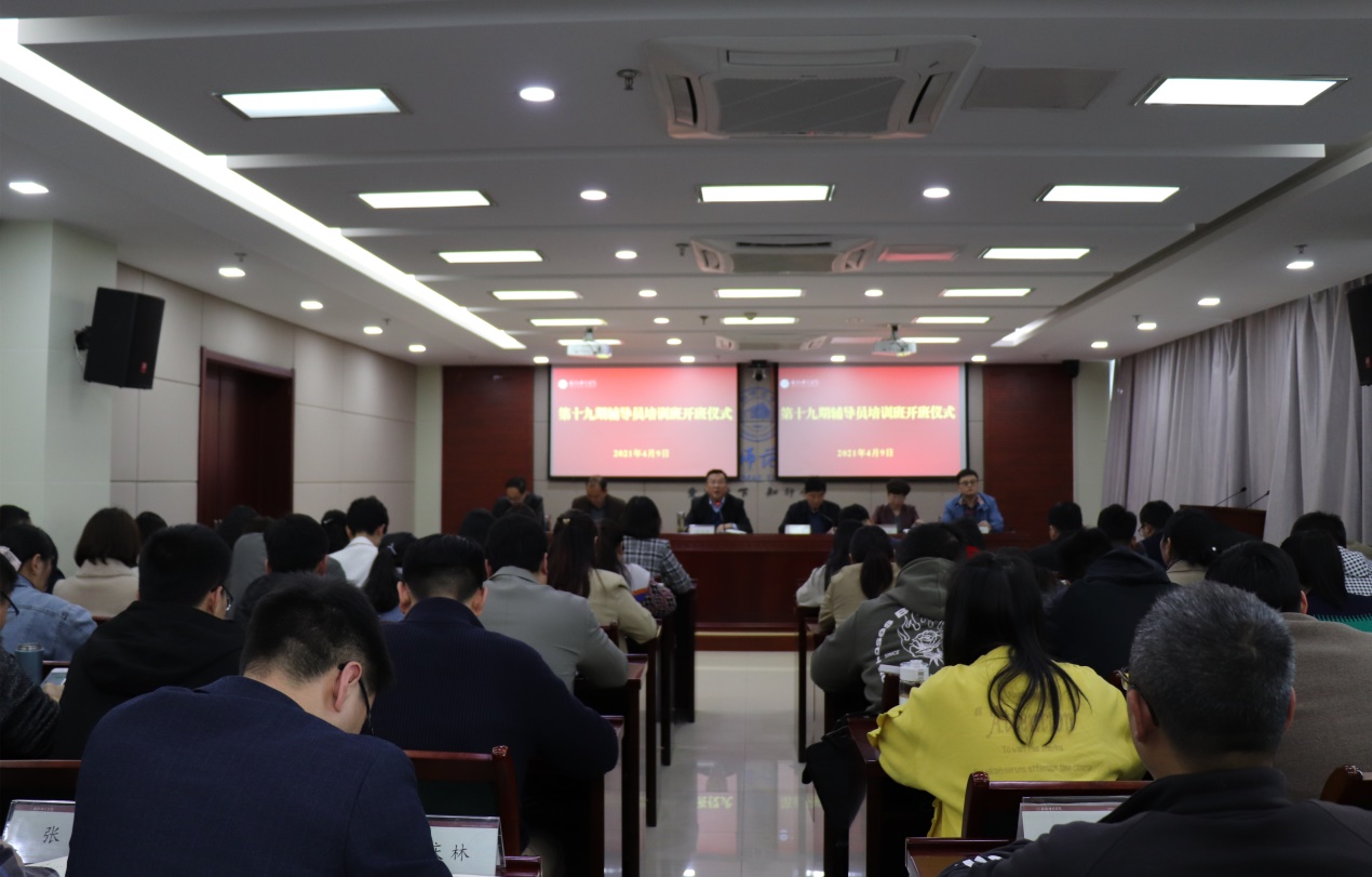 本网讯 为进一步加强新形势下学院辅导员队伍建设,提升学院思想政治工作水平,贯彻落实党史学习教育动员大会精神,不断增强“三全育人”工作实效,4月9日下午,学院在锦绣校区行知楼第三会议室举办第十九期辅导员培训班开班仪式,党委书记徐成钢出席会议并作动员讲话,宣传部、人事处、学生工作部、团委等部门负责同志,各二级学院分党委(党总支)副书记,全体辅导员,学生工作处全体人员参加会议,会议由党委副书记吴昕春主持。