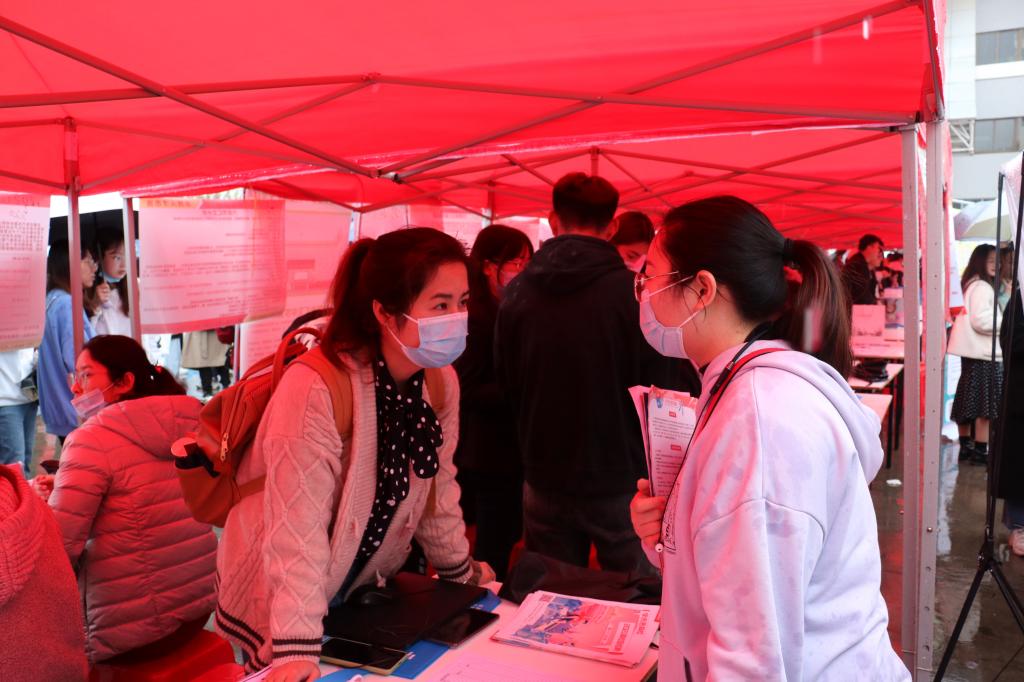 雨水丝毫没有阻挡用人单位招才纳贤和毕业生求职应聘的热情,用人单位早早便来到各自的展位前虚位以待,毕业生们也纷纷进入招聘场地应聘,现场气氛热烈。2021届金融工程专业毕业生薛文娟说:“看到现场那么多企业招聘信息还是有些激动的,希望能在双选会上找到一份和专业相关的实习工作。”计算机学院2021届毕业生赵静同学说:“虽然所学专业的市场前景很好,但是想要找到一份满意的工作,还需要做好充足的准备。在参加双选会之前,我先对自己的职业进行了更清晰的规划,通过网络了解相关的企业工作信息,并事先做好了简历。”合肥典学教育科技有限公司工作人员表示,除了具备专业的知识技能外,用人单位也在意学生们是否有相关的工作经验,是否具有良好的沟通能力和积极向上的心态。链家地产公司的相关负责人说:“比起学生的学历,我们更看重学生是否具备学习能力。公司后期会针对房地产、租赁买卖等相关知识进行专业培训和专门指导。因此希望毕业生们大胆投简历,能够积极踊跃地加入链家集团。”