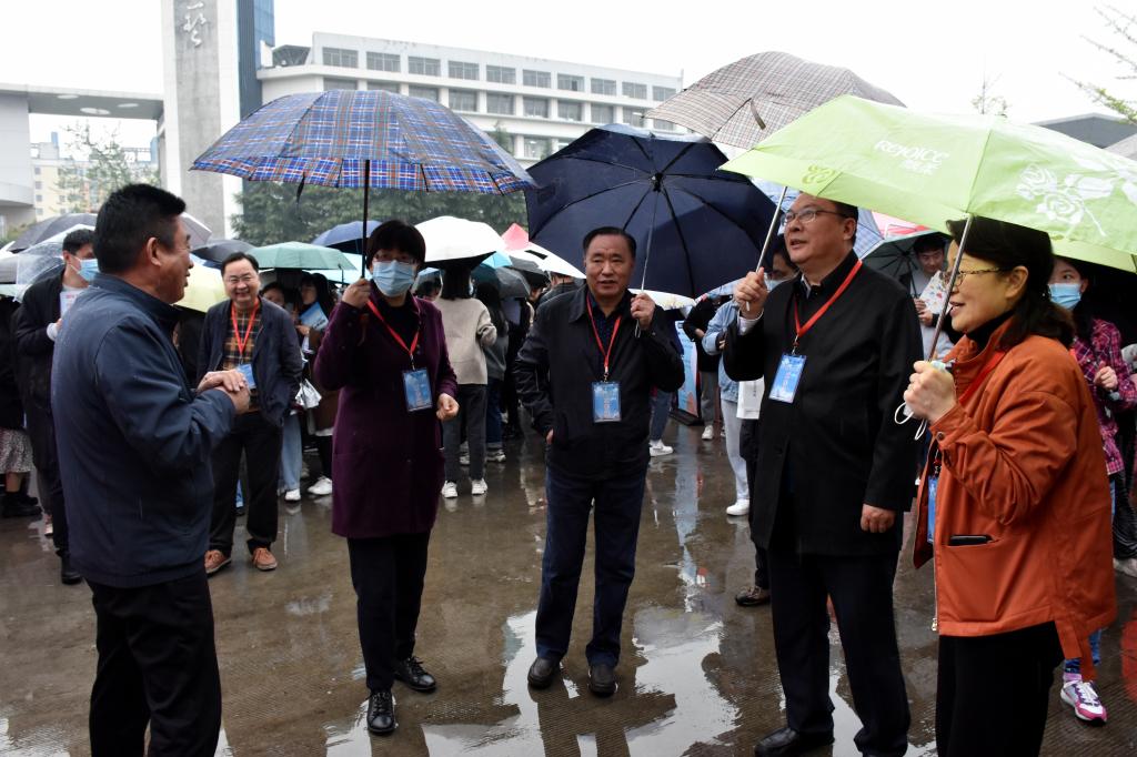 本网讯 为抓住毕业生就业“窗口期”“黄金期”,促进毕业生更充分更高质量就业,4月7日下午,由省大中专毕业生就业指导中心主办、我院承办的2021届毕业生就业春季双选会在锦绣校区博约楼南广场成功举行。省大中专毕业生就业指导中心主任袁江林,信息部主任崔松革,学院党委书记徐成钢,党委副书记、院长方东玲,党委副书记吴昕春,副院长谢阳群、姚本先、曹卓良,纪委书记徐文林及各二级学院党政负责同志等到会指导并巡视了双选会现场。来自锦绣校区、三孝口校区的上千名毕业生在辅导员的带领下冒雨参加了双选会。