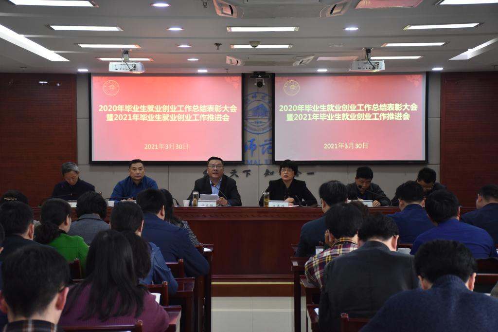 就业创业工作处处长马平对2020年本科毕业生就业创业工作进行总结;传达教育部有关会议精神,对2021年本科毕业生就业创业工作作出具体安排。