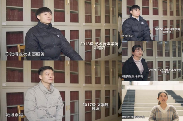 视频以深入学习贯彻党的十九届五中全会精神和习近平总书记关于打赢疫情防控的人民战争总体战阻击战重要论述为指导思想,以激发青年大学生的社会责任和使命感为出发点,从所征集的100余件我校学生抗“疫”志愿故事中,挖掘出4位抗疫志愿者典型学生代表。录制过程中,以视频访谈的形式,讲述他们在担任志愿者期间的所思、所得、所想、所悟,达到让身边人讲好身边事、用身边事教育身边人的目的。