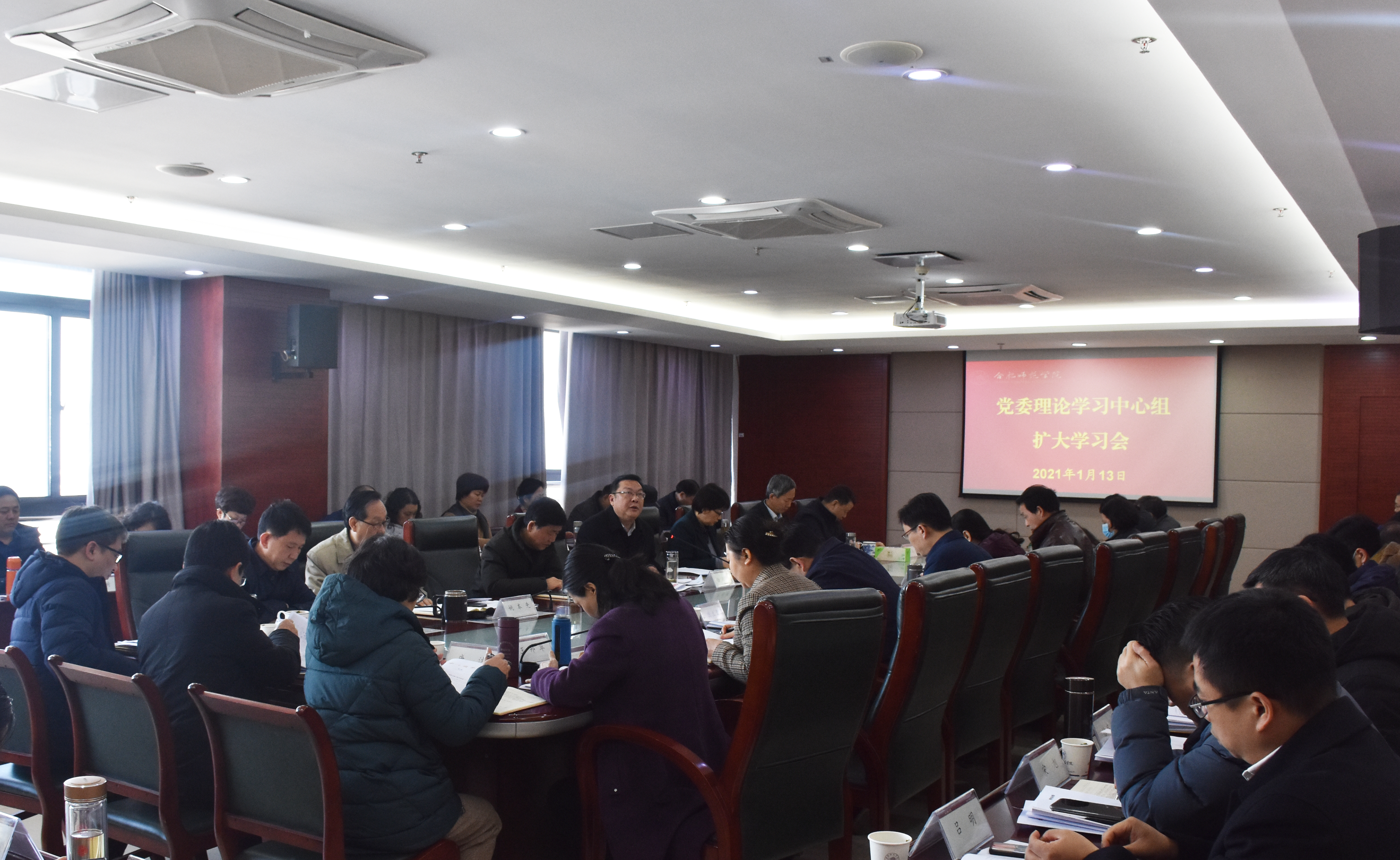 本网讯 1月13日上午,学院举行2021年第一次党委理论学习中心组扩大学习会。党委书记徐成钢主持会议并讲话。党委理论学习中心组成员出席会议,各院系级党委(党总支)、直属党支部书记,各学院院长、各部门主要负责人参加会议。